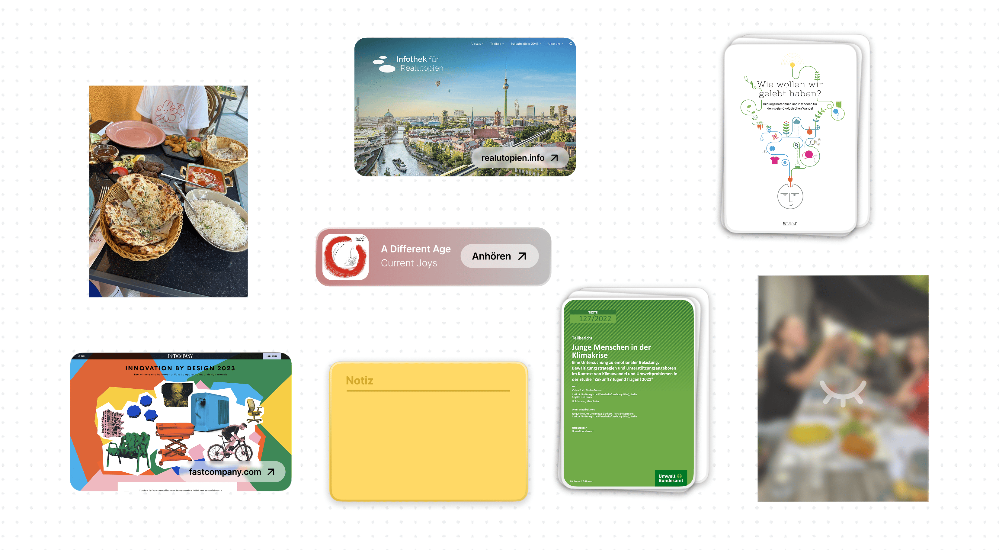 "imagine this” is a conceptual user experience that supports non-designers in exploring their own desirable futures. The tool combines working with a variety of artefacts, design-futuring methods and intelligent tools to let people create relatable, tangible, and hopeful images of a sustainable life, rooted in their personal context and values.